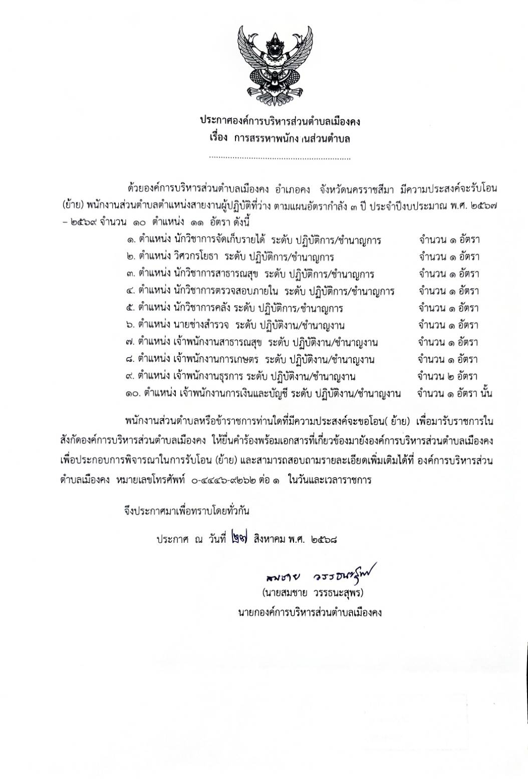 นายกองค์การบริหารส่วนตำบลเมืองคง
